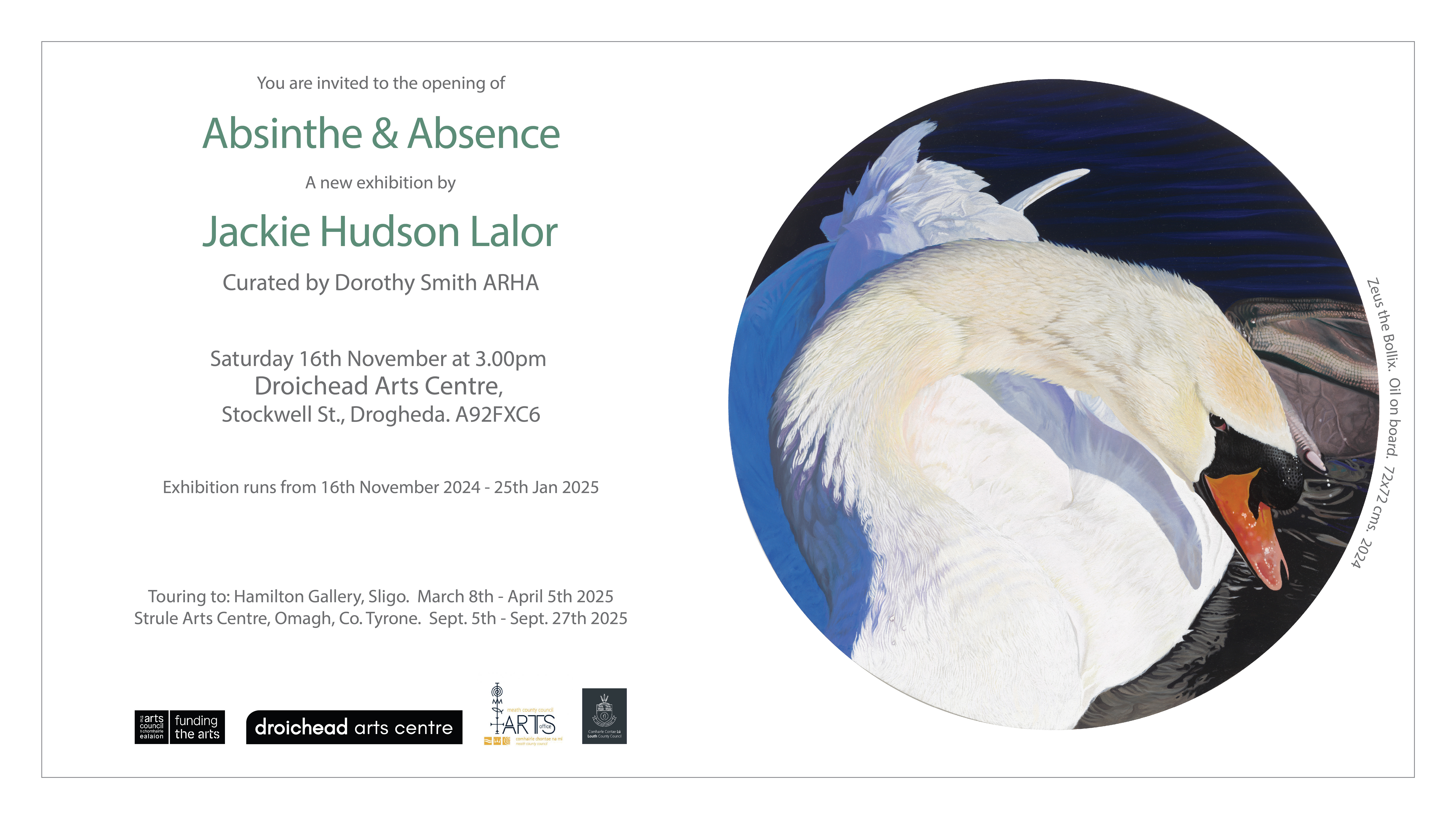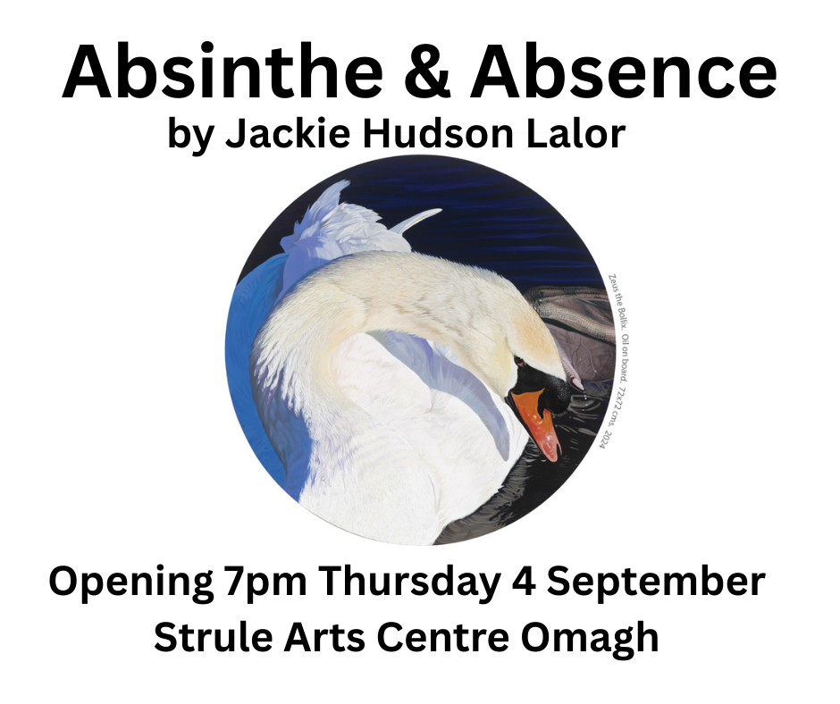 Strule Arts Centre Omagh is delighted to present the touring exhibition, ‘Absinthe & Absence’ by acclaimed artist, Jackie Hudson Lalor. This solo exhibition was launched in the Droichead Arts Centre, Drogheda in November 2024 and then travelled to the Hamilton Gallery in Sligo in March 2025. It now opens at 7pm Thursday 4 September in Strule Arts Centre.